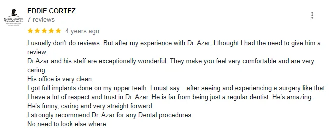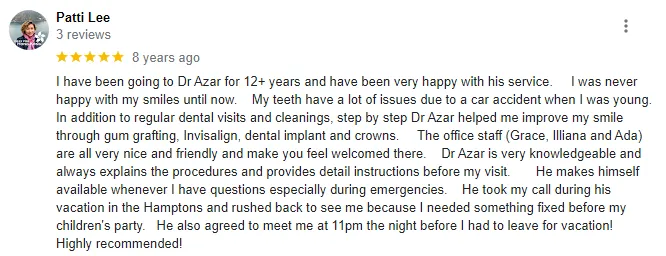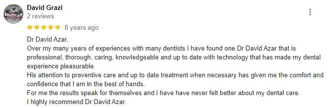 Dr David E. Azar is a board certified diplomate of the American Board of Oral Implantology. He is a Master Clinician in Implant Dentistry from the UCLA School of Dentistry, Global Institute for Dental Education (UCLA/gIDE) and is a Fellow of the International Congress of Oral Implantology. Dr Azar is the Moderator of the UCLA/gIDE Members Forum where he fields quetions on all aspects of Implant Dentistry from an international group of highly trained clinicians. Dr Azar is also the Director of the gIDE NYC Implant Study Club which meets every other month to discuss the newest concepts in Implant Dentistry. Dr David Azar takes over 80 hours of Continuing Education courses each year.