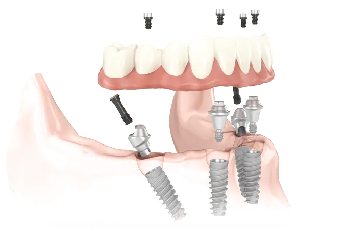 ● Is custom designed to fix onto 4-6 implants per arch.